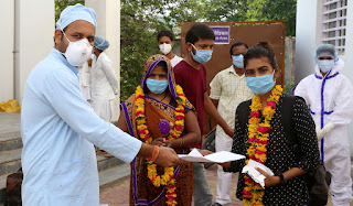 डाँ पटेल ने कहा हमें जागरूक होने की आवश्यकता है, स्वयं जागरूक हो जाते हैं तो कोरोना किसी को नहीं हो सकता, यदि आप नियमों का पालन नहीं करेंगे तो जरूर आप कोरोना पीडित हो सकते हैं, विपरीत परिस्थितियों में जाने से तभी बच सकते हैं जब आप बचाव करेंगे, अनावश्यक ना घूमे फिरे, घर पर ही रहे, शासन द्वारा दिये निर्देशों का अक्षरशरू पालन करें। उन्होंने कहा आगे भी इसी क्रम में लगातार डिस्चार्ज का दौर चलेगा, इस प्रकार के सुखद अनुभव हमें मिलते रहे यही ईश्वर से कामना है, दमोह में लगातार खुशियां भी मिल रही है, इसी प्रकार खुशियों के पल हमें मिलते रहे और ऐसे ही सभी मरीज डिस्चार्ज होकर खुशी-खुशी अपने घर पहुंचते रहे, यही कारवां आगे बढ़ता रहे, ईश्वर की असीम दमोह पर बनी रहे, यही प्रार्थना ईश्वर से करते हैं।